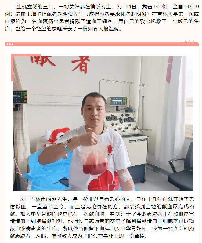 若为新生故 万般皆可抛——吉林省143例造血干细胞捐献者赵明俊