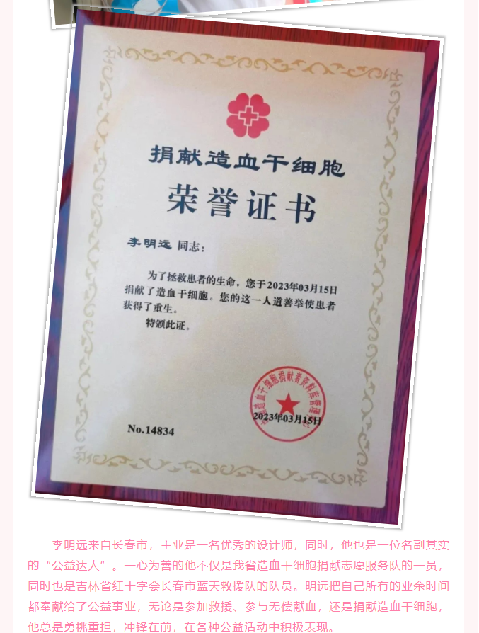 守公益初心,行髓爱善举——省第144例造血干细胞捐献者李明远