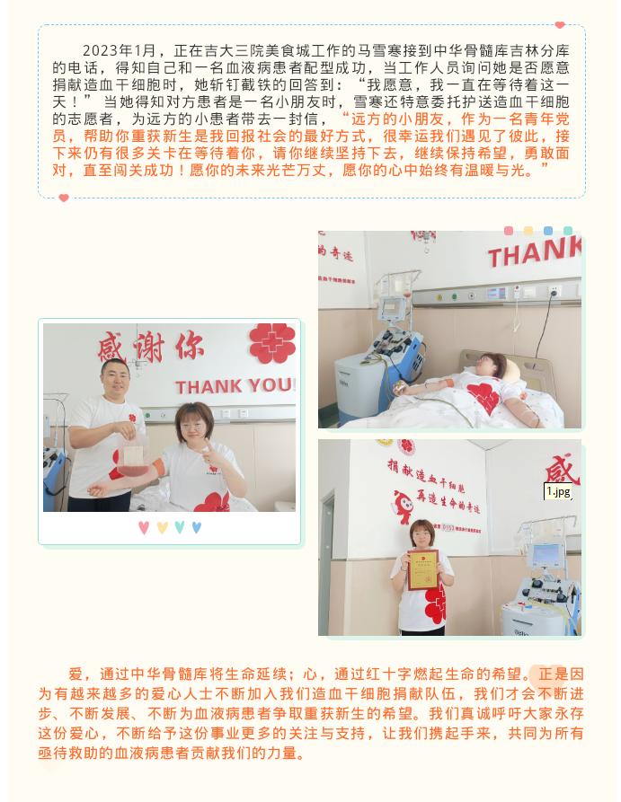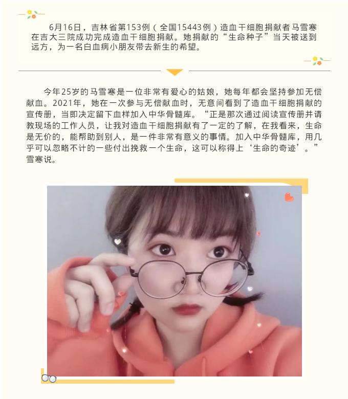 爱心点燃希望,奉献成就新生——吉林省第153例造血干细胞捐献者马雪寒
