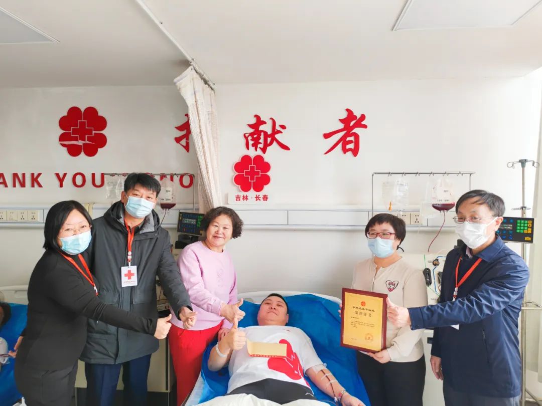采集当日,吉林省红十字会党组成员、秘书长姚玉海,中华骨髓库吉林分库主任刘艳丽,长春市红十字会常务副会长姜洪波前往采集现场慰问两位捐献者,并为他们颁发荣誉证书,感谢他们为挽救患者生命所做出的爱心善举。