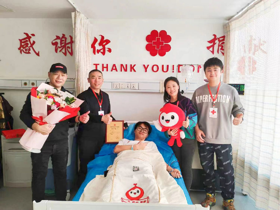 1月31日,我省第170例(全国16901例)造血干细胞捐献者周翊成功完成造血干细胞捐献,用自己的青春热血和坚定信念创造了又一个生命奇迹。采集当天,吉林市红十字会秘书长伊海波前往采集医院看望慰问周翊,为他颁发荣誉证书,感谢他的无私奉献。