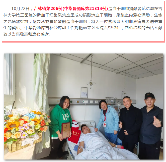 热血青年同捐献 生命之花并蒂开——吉林省207例、208例造血干细胞捐献者同日完成采集