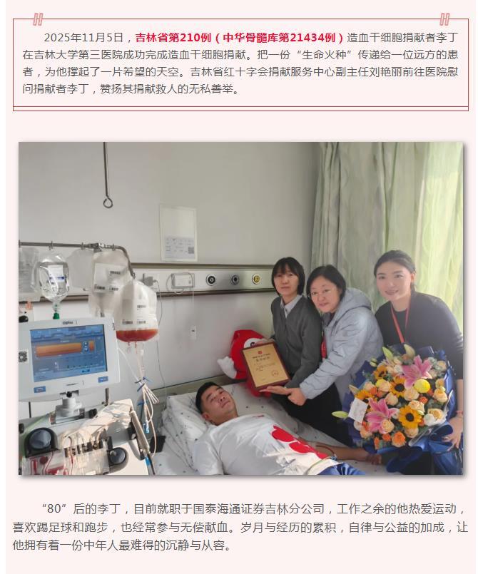 热血为约,大爱“髓”行——吉林省第210例造血干细胞捐献者李丁
