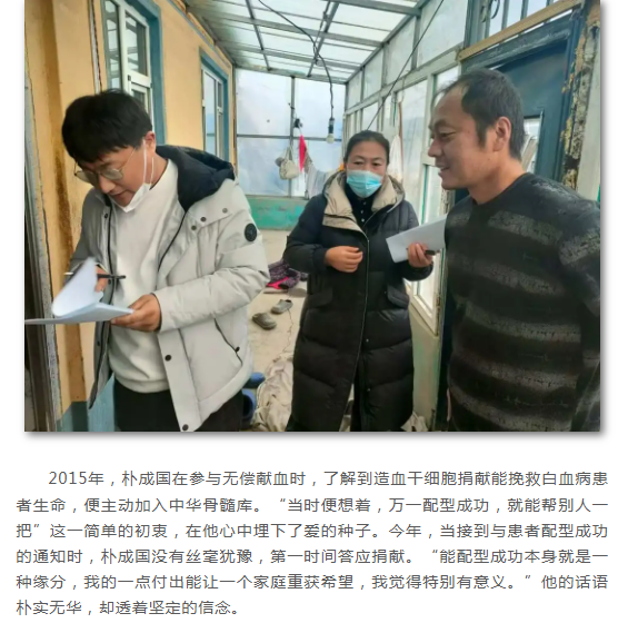 无言大爱暖寒冬 生命火种映初心——吉林省第212例造血干细胞捐献者朴成国