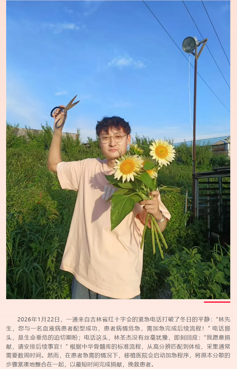 热血初心 光速驰援——吉林省第214例造血干细胞捐献者林圣杰