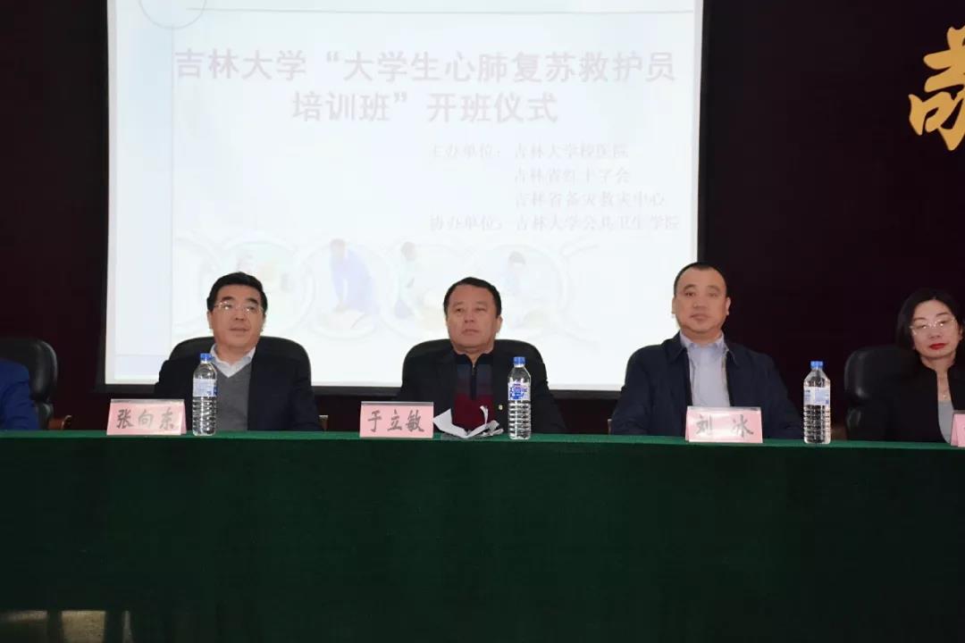 3月2日—3日,省红十字会联合吉林大学校医院利用周末时间,为吉林大学60名在校学生进行了救护员培训。此次培训受到了会领导和校领导的重视,吉林大学副校长张向东,省红十字会党组成员、秘书长于立敏,备灾救灾中心主任刘冰,吉林大学学生工作部部长张国兴,吉林大学校医院院长刘林林,吉林大学校医院党委书记黄庆红,吉林大学公共卫生学院党委副书记刘丽,吉林大学校医院副院长苏为彪,吉林大学校医院党委副书记陈凯光出席了开班仪式。