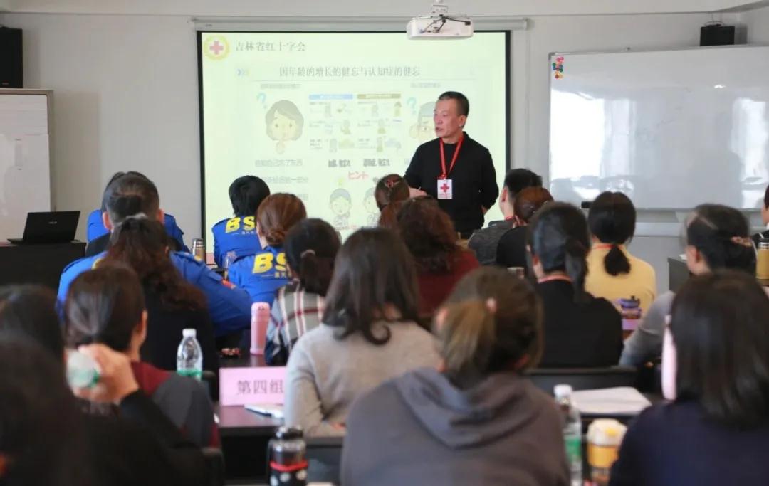 吉林省红十字会赈济救护部副部长纪绍阳作开班致辞并讲授红十字运动与志愿服务管理知识。