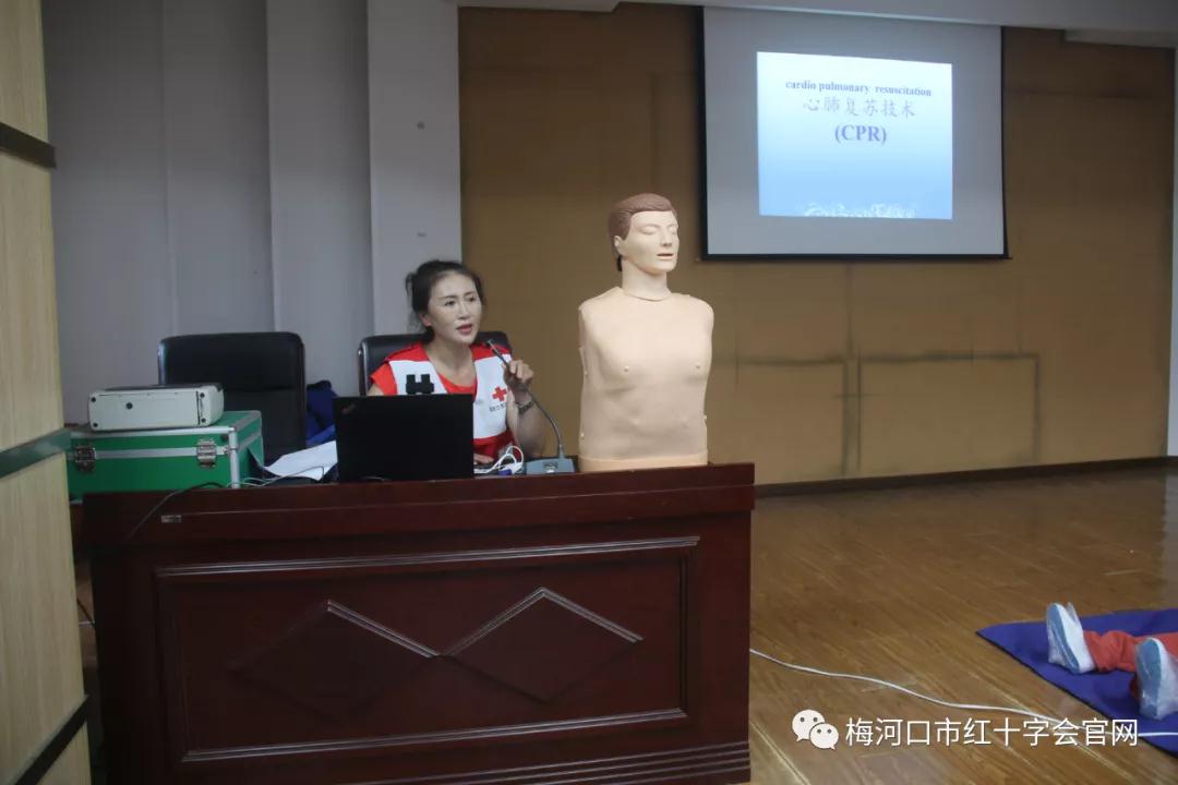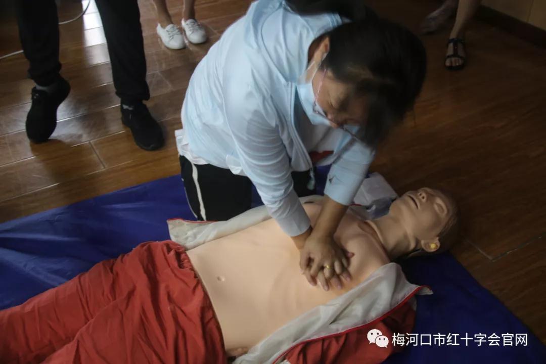 开展应急救护培训,普及应急救护知识,组织志愿者参与现场救护是《中华人民共和国红十字会法》赋予红十字组织的重要职责。为推进梅河口市红十字应急救护工作高质量发展,发挥红十字会在公众参与应急救护培训中主体作用,不断提高应急救护知识在人民群众中普及率,按照省红十字会要求,秉承“公众参与、现场教学、注重质量、稳步推进”的原则,2021年7月21日,举办心肺复苏(CPR+AED)课程培训班,市卫生健康局、市中心血站、松江社区等40余人参加了此次培训 。