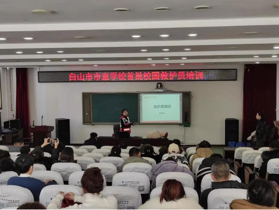 为深入实施《健康中国行动(2019-2030)》,进一步推进校园应急救护工作,切实提高在校师生意外伤害处置能力,12月2日—3日,白山市红十字会联合市教育局,在白山市职业技术学校,开展市直学校校园救护员培训班。