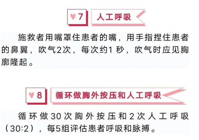 传统的心肺复苏包括胸外按压、开放气道和人工呼吸三个步骤,若施救者不能或不愿意进行人工呼吸,可只进行胸外按压。此时,胸外按压应连续进行,以每分钟100~120次的频率按压,直到患者出现复苏有效的指征或者有专业急救人员到达现场。但是,对于缺氧性心搏骤停的患者(如溺水、呼吸道阻塞)和儿童、婴儿等,应实施传统的心肺复苏。