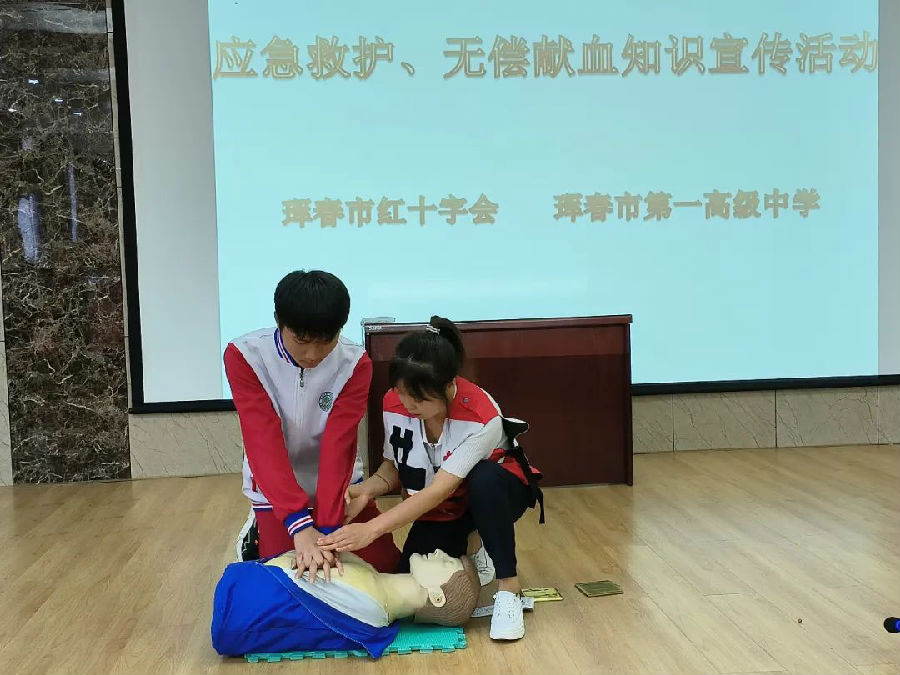 近日,珲春红会举办了一期红十字青少年应急救护培训班。来自珲春四小和珲春一中的105名师生参加了此次培训。国家级讲师朴雪梅、市血站曲静为学员们讲解了急救知识和无偿献血知识。学员们纷纷表示,参加此次培训受益匪浅。