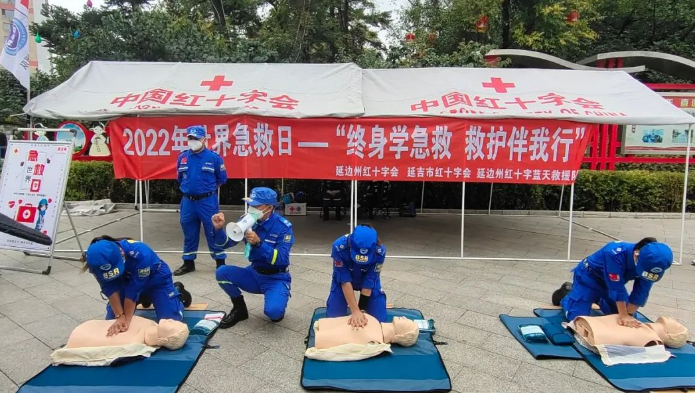 2022年9月11日,为迎接第23个“世界急救日”,延边朝鲜族自治州红十字会、延吉市红十字会联合开展“终身学急救,救护伴我行”主题宣传活动,向市民普及急救知识,带动市民进行实际操作,掀起一阵“人人学急救”的热潮。