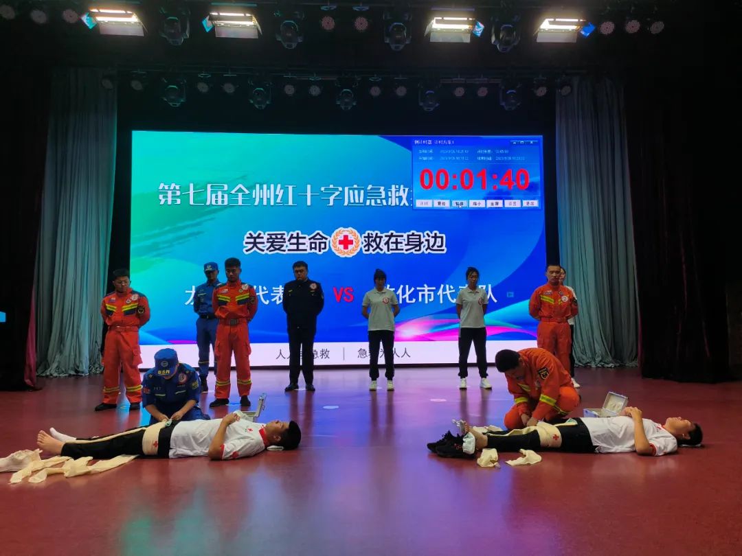 此次大赛,共有来自各县(市)的8支代表队参赛。每支代表队由来自当地的消防员、应急安全员和红十字救护员等5人组成。比赛项目包括救护技能操作、主题演讲和理论知识答题,分四轮进行,每轮比赛由两支代表队同台竞技。