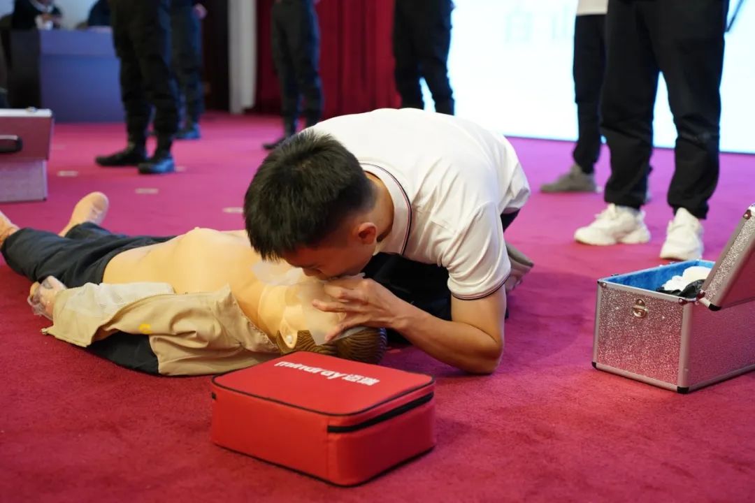 本次比赛共分为成人心肺复苏+AED实际操作、创伤救护三项(头顶部右侧出血包扎、左大腿中段闭合性骨折,利用健肢固定、腹部左侧被匕首扎伤,未拔出匕首)、救护演讲、理论答题三项内容。各参赛队伍按照抽签顺序,依次上台竞技。