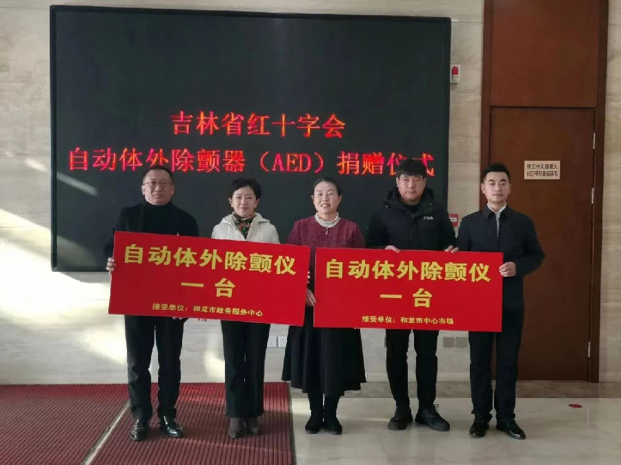 和龙市政府副市长李莲淑出席仪式并致辞。仪式结束后,红十字志愿者还在现场演示了AED使用方法,并进行了心肺复苏技能操作演练。