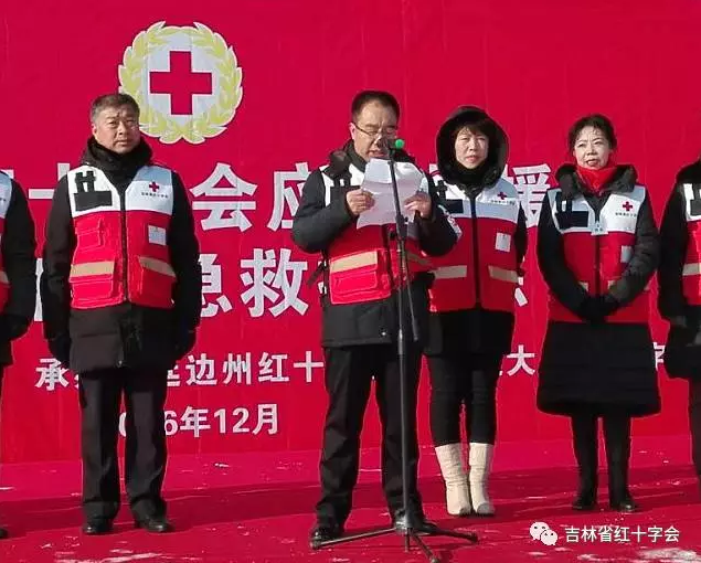 2016年12月15日上午,吉林省红十字会应急救援队2016年应急救援演练在延边大学体育场举行,来自省红十会的4支应急救援队、省红十字会机关、各市(州)红十字会工作人员以及延边大学学生约70人参加了演练。