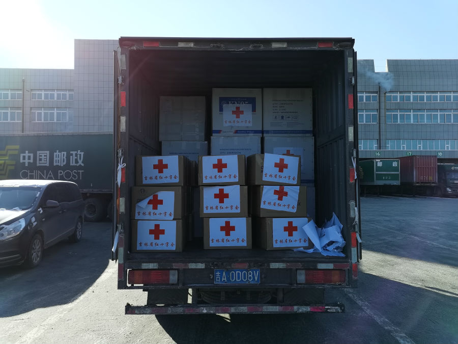 2021年2月3日,广州康龄医疗用品有限公司通过吉林省红十字会向长春、通化、松原等地区捐赠的320箱四大品类口罩运抵长春。为第一时间将防疫物资运往疫区,吉林省救灾备灾中心按照“无缝对接,闭环发运”的运输模式,协调捐赠企业、运输企业、邮政等各方,将发运主战场确定为中国邮政吉林省分公司长春中心邮区。