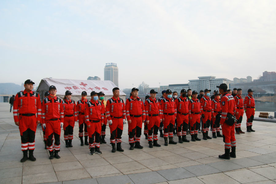 11月20日,市红十字赈济救援队队员不顾严寒天气,利用周末休息时间,在滨江西路开展市红十字赈济救援队2021年度冬季综合模拟演练暨技能体能双项考核活动。