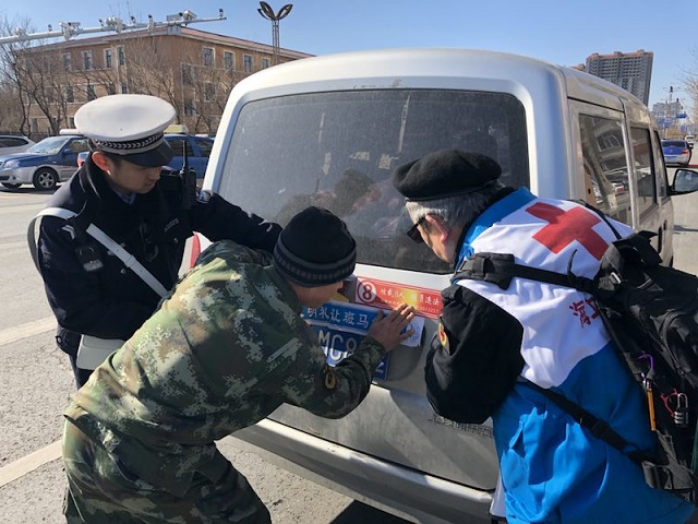 红十字海上虎志愿者和红星出租车团队在自己的出租车上贴上了“礼让斑马线 文明我当先”活动的标签。红十字海上湖志愿者和铁西交管大队名交警们在市委岗进行了礼让斑马线活动的宣传和劝导活动,活动中,一共为五十台过往的车辆贴上了文明礼让的标签,纠正劝导了三辆右转车辆没有减速避让行人的行为,纠正了行人闯红灯过马路行为四起,活动取得了圆满的成功。