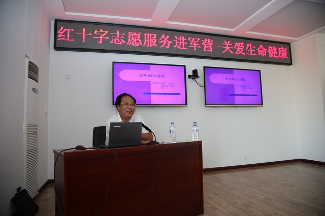 来自吉大二院老年病科主任杨文教授在活动现场为参会人员讲解老年人常见病的防范和日常护理常识。