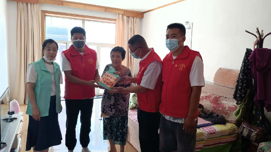 和龙市光明街道乐园社区红十字志愿服务队开展“欢庆老人节暖心投递到万家”活动